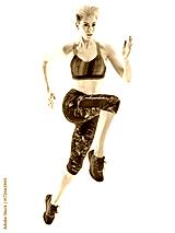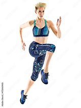 one young caucasian woman runner running jogger jogging studio isolated in white background