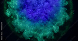 Art splash. Shiny fluid. Blue violet green turquoise round sparkling mix on black background. Color dust ink abstract blend blur water.
