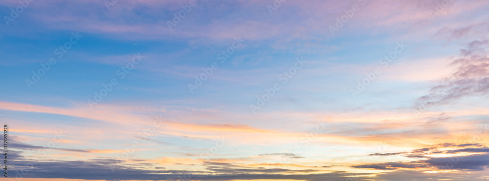 Sky lit with a stunning mix of blue, pink, and golden clouds at dusk or dawn.