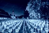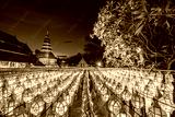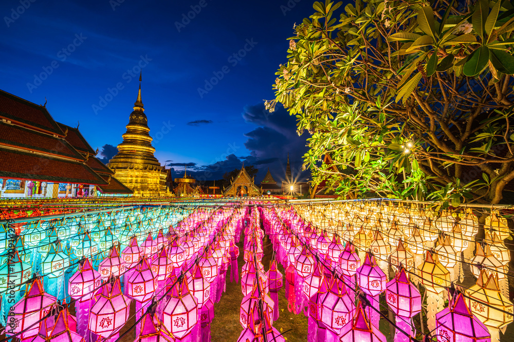 Beautiful Lanna lamp lantern are northern thai style lanterns in Loi Krathong or Yi Peng Festival at Wat Phra That Hariphunchai is a Buddhist worship temple It a tourist attraction Lamphun Thailand.