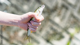 鮎 ( アユ 川魚 )の つかみ取り の 川遊び で 自然体験 【 夏休み の 思い出 】