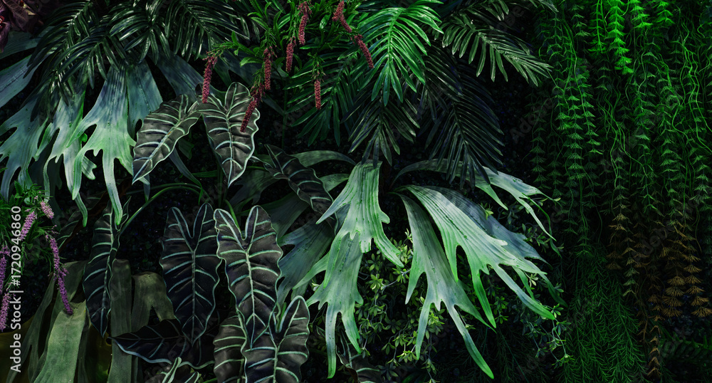 Full Frame of Green Leaves Pattern Background, Nature Lush Foliage Leaf Texture, tropical leaf