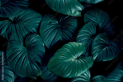 abstract tropical leaf textures on dark tone, natural green background.