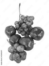 bunch of red grapes and apple on white background isolated