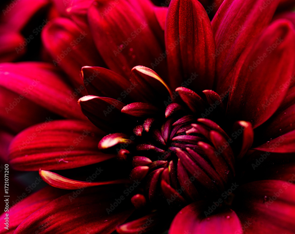 スプレー菊の赤紫色の花を黒背景でマクロ撮影17