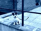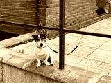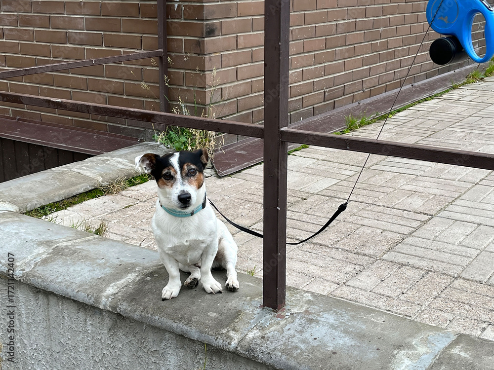 Jack russell terrier dog sitting on concrete wall