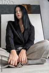 Young woman sitting cross-legged feeling thoughtful