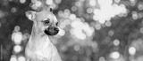 Young happy smart domestic dog in the garden
