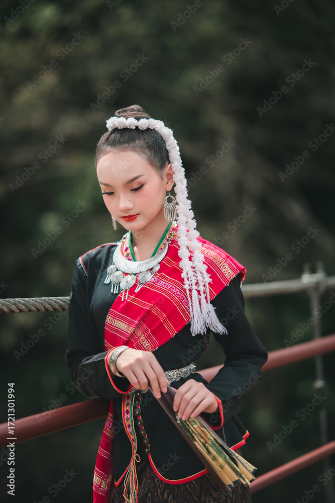 Young Woman in Traditional Dress with Beautiful Accessories Outdoors