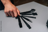 Technician holding set of specialized cleaning tools, including brushes, tweezers, blower, designed for meticulous computer maintenance and repair. Concept of service, repair and cleaning computer.