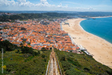 Panoramic View of Nazare Coastal Town with Red Rooftops and Atlantic Ocean in Portugal