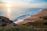 Golden Sunset Over Atlantic Waves on the Sandy Beach of Nazare, Portugal Coastline