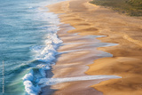 Golden Sandy Beach with Rolling Atlantic Ocean Waves in Nazare, Portugal, Famous Surf Destination