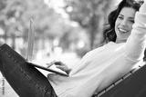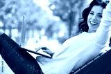 Young woman with laptop in park