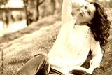 lovely beautiful woman in a woolen sweater relaxes.