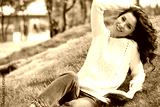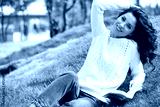 lovely beautiful woman in a woolen sweater relaxes.
