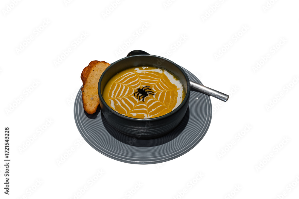 Creamy Culinary: A top-down view of a warm soup bowl and slice of bread. Capture a comforting meal with the warmth of a homemade touch and a gourmet experience.