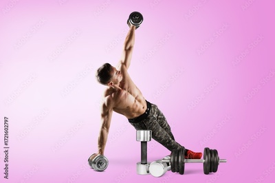 Handsome Athletic Sporty Men Exercising with kettlebell