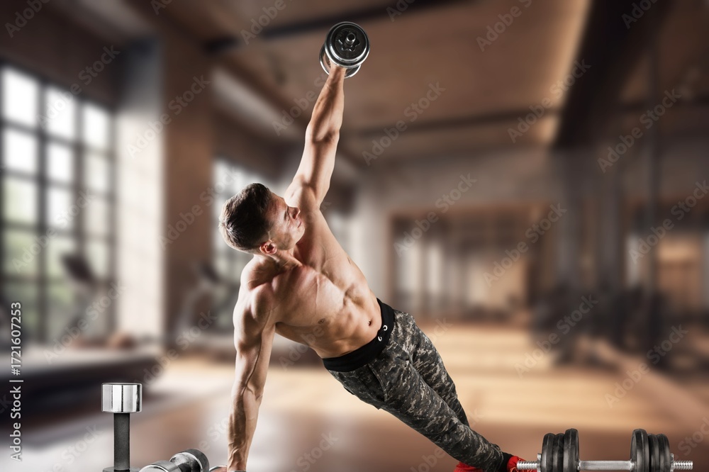 Handsome Athletic Sporty Men Exercising with kettlebell