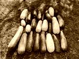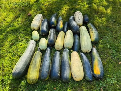 Tsukini crop is harvested in the garden in the fall. Useful vitamin vegetables for vegetarian nutrition.