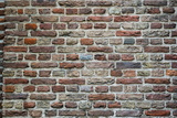 Old, weathered, colorful brick wall pattern or background. Front view, close up, no people