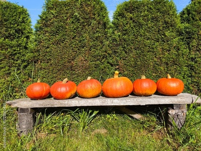 Pumpkins were picked from the vegetable garden for vegetarian meals. The orange vegetables are the autumn harvest.