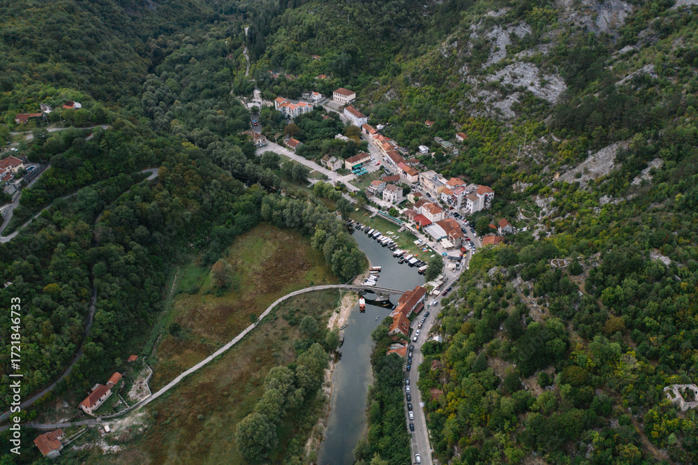 Small settlement in canyon. Rijeka Crnojevica, Montenegro