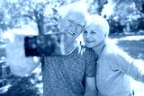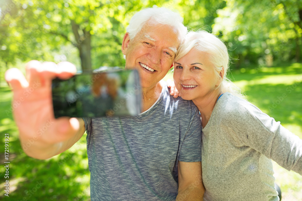 Senior couple with bicycles taking selfie