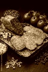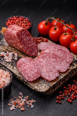 Sliced salami sausage, smoked meat as a delicacy for the table. Salami sausage