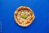 Classic Margherita Neapolitan Pizza on Blue Background