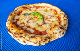 Classic Margherita Neapolitan Pizza on Blue Background