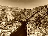 Omis Croatia river canyon with stone cliffs terracotta rooftops and Cetina flowing to Adriatic beneath mountain slopes