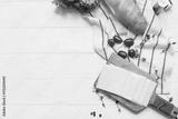 Board with slices of delicious processed cheese, fresh vegetables and bread on white wooden table