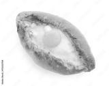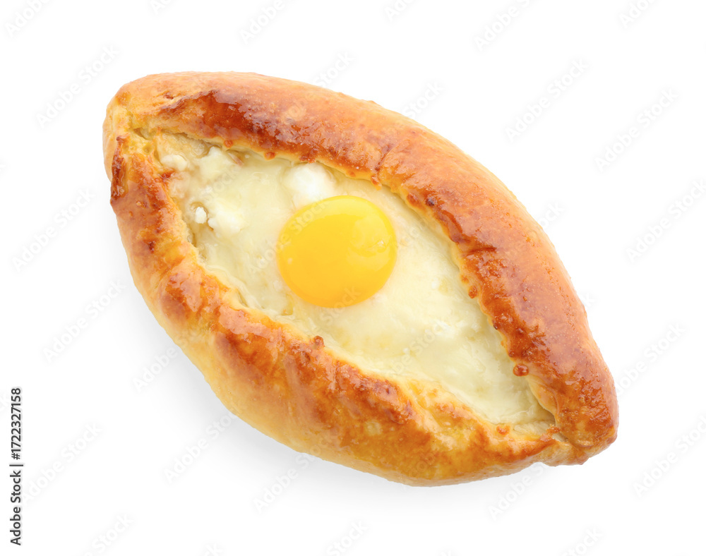 Tasty khachapuri with cheese and egg isolated on white, top view