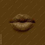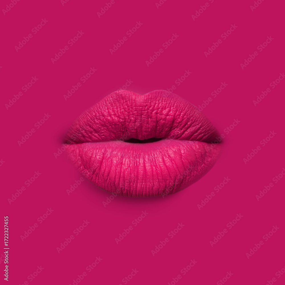 Woman's lips against background matching color of her lipstick
