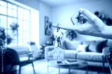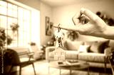 Moving house concept. The key into the door in room