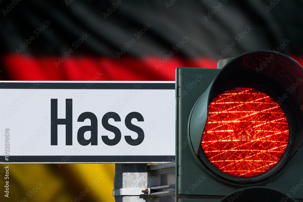 Deutsche Flagge und rote Ampel als Symbol gegen Hass in Duetschland