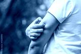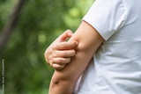 The woman's hands he uses his hands to scratch his back because of dermatitis and itch sensation.