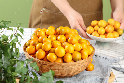 Fresh Golden Kumquats from Guangxi China in Wicker Basket - Sweet Citrus Fruit with Smooth Skin