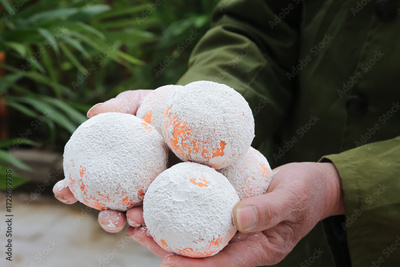 Fresh White Fungus Mushrooms from Wuming Guangxi China Held in Hands with Tropical Garden Background