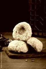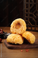 Dried Snow Fungus White Tremella Traditional Chinese Medicine Ingredient on Wooden Board