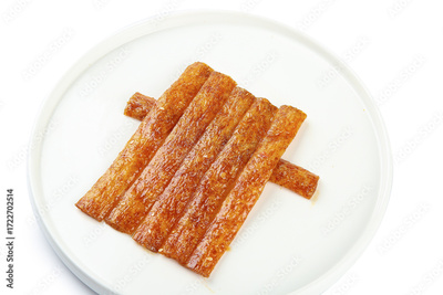 Handmade Dried Chili Pepper Sticks on White Plate - Spicy Food Snack