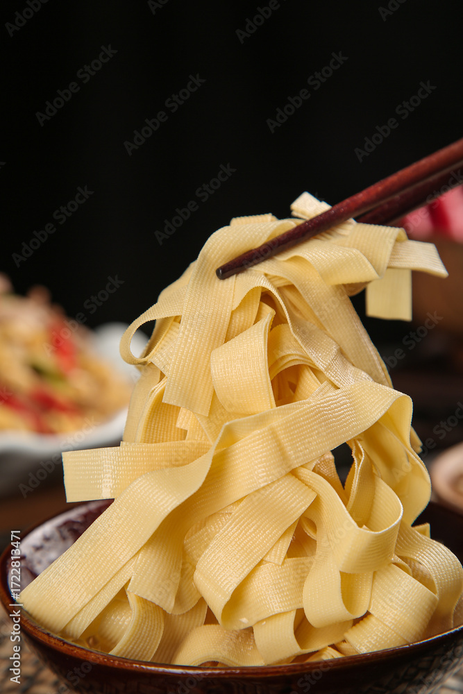 Fresh Handmade Tofu Skin Sheets in Bowl with Chopsticks - Traditional Soy Food Product