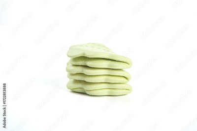 Handmade Green Pasta Sheets Stack with Ruffled Edges on White Background