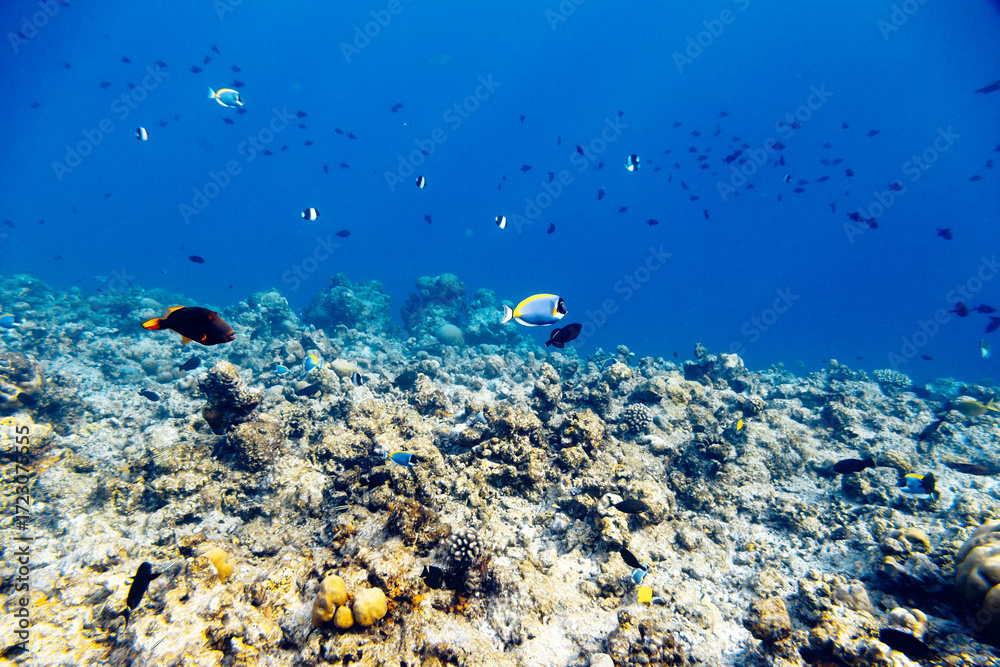 Underwater view of coral reef with colorful fish