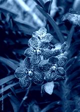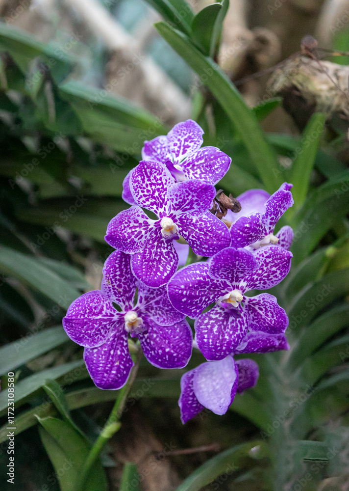 Close-up purple - white orchid on green blur bacground, Vanda coerulea, vertical shape