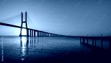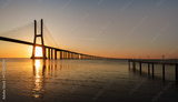 Sunrise Over Vasco da Gama Bridge Spanning the Tagus River in Lisbon, Portugal