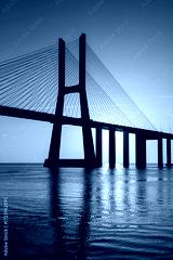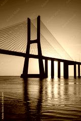 Sunrise Over Vasco da Gama Bridge Spanning the Tagus River in Lisbon, Portugal