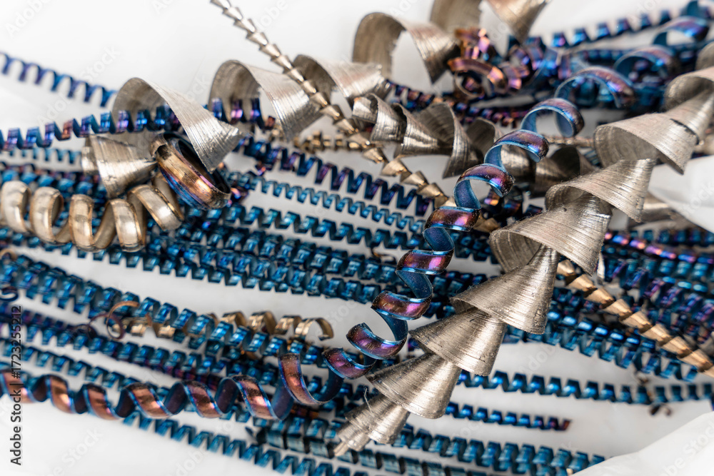 Metal shavings creating abstract spiraling industrial waste texture