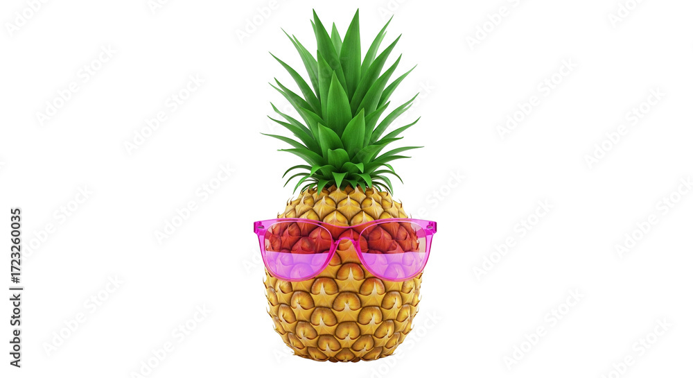 Isolated pineapple fruit wearing sunglasses, a tropical and refreshing summer fruit icon